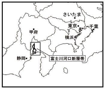 富士川河口断層帯 画像は、「地震調査研究推進本部」より引用なお、産業技術総合研究所の地震情報研究部門も、駿河湾北部沿岸域で地質・活断層調査を行い、富士川河口断層帯が東海地震の想定震源域に含まれる駿河トラフが、東海地震と連動して大きな被害をもたらす可能性があると発表している。