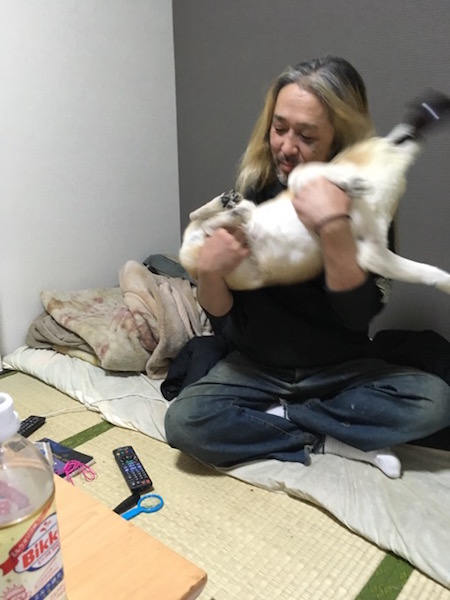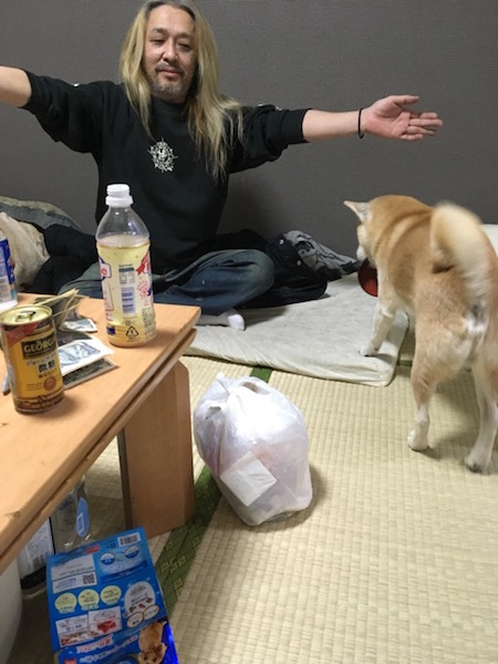 というわけで、屍忌蛇の新居へ移動することになった。歌舞伎町からタクシーでワンメーター。閑静な住宅街にあるガーリーな外観のマンション、その2階に屍忌蛇宅はあった。玄関の扉を開け、廊下を抜けると、お椀をくわえた安兵衛が畳の上をシャカシャカと走り回っていた。