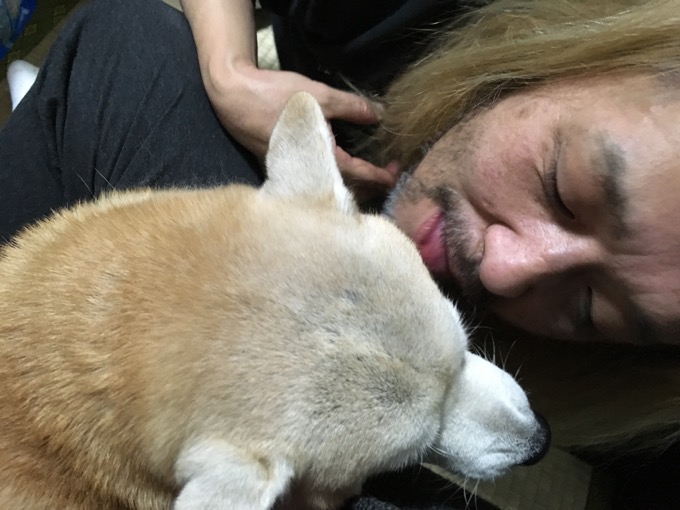 屍忌蛇 10歳。人間でいえば60歳。柴犬は、14、5歳が寿命って言われてる。その日が来るのが怖いし悲しい。だから、たまに練習してるの。安兵衛が昼寝してるときに死んでることにして、僕が安兵衛の胸に顔を埋めて「こんなに冷たくなっちゃって!」って泣くんです。あったかいんですけどね。「いつも酔って迷惑かけてごめん! もっと優しくしてあげればよかった!」と言って泣くの。