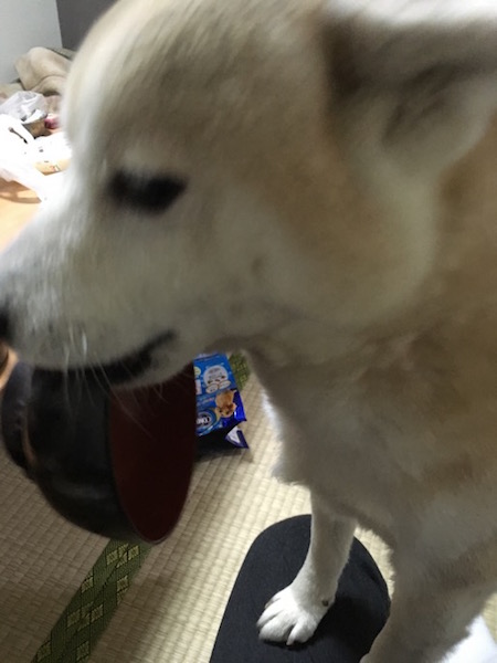 屍忌蛇 ガルルルルル……って唸ってます。安兵衛は、酔った俺が嫌いなのよ。安兵衛だけじゃないな。みんな俺のことを煙たがる。人間的に最低だから(と言って、黒霧島のパックを牛乳のように飲む)。
