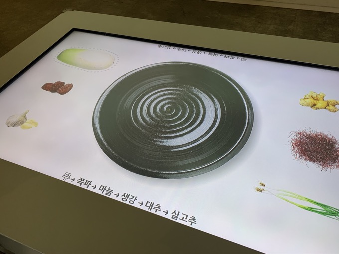 どれどれと触ってみると、野菜をタッチして壺の中に入れていく作業を実際にする。最初は簡単だが、途中からは入れる順番を間違えないようにしなければならない。そして、漬け込むと美味しいキムチが出来上がり、である。