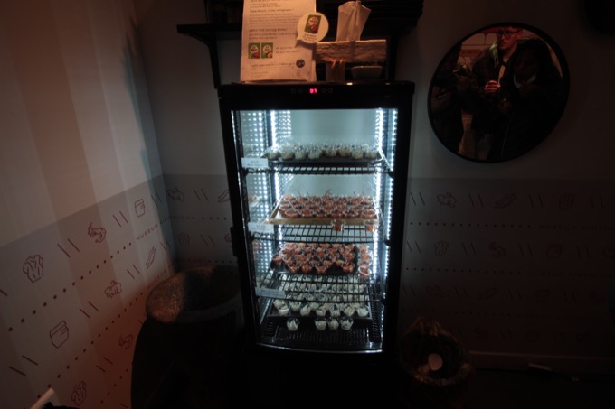 最後の小部屋に入ると、冷蔵庫が設置されていて、キムチを実食することができた。普通の赤いキムチと、白いキムチがあった。説明にも「white kimchi」と書かれている。
