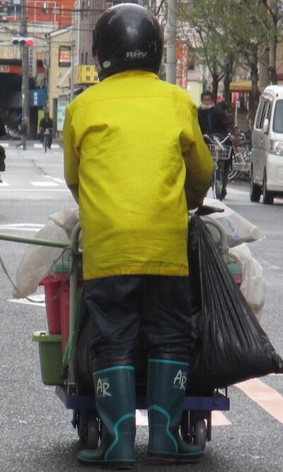 アルミ缶回収を生業にしている人が多いのだが、とにかく歩きっぱなしの仕事なのだ。