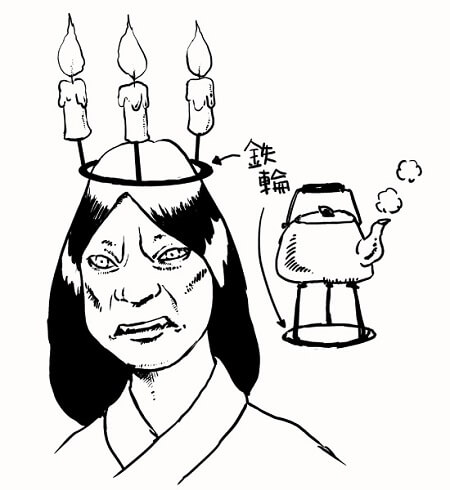 「赤い着物を着て、顔に朱を塗って、頭に鉄輪をかぶり、鉄輪の足にろうそくをつければ、鬼になって恨みが果たせるだろう」
