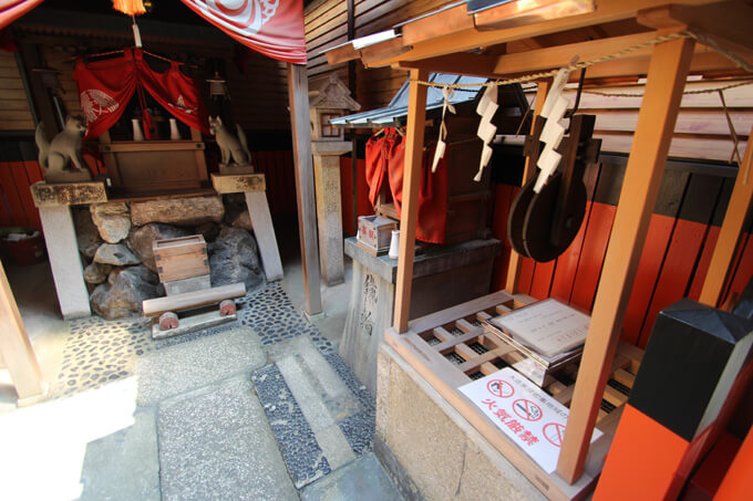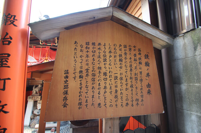 井戸の隣には、小さな祠がある。発掘された「鉄輪の碑」をご神体にしているそうだ。もちろんご利益は「悪縁切り」だ。