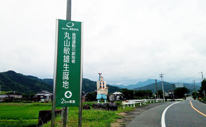 (神ノ國ヲ) 実は、修験道の聖地「求菩提」は、全国6万8千の企業が参加する「倫理法人会」の上部組織「倫理研究所」の創設者・丸山敏雄(1892-1951)の出身地なのです。丸山は社会教育家・書家としても知られる人物ですが、その実態は、「ひとのみち教団(現・PL教団)」の幹部です。事実、戦前に「ひとのみち教団」准祖として、教祖とともに逮捕されています。その丸山が第二次世界大戦後に恩赦を受けて創設したのが、「倫理研究所」なのです。