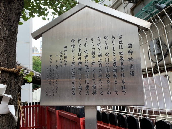 実際には、数百年前、梅田一帯に大洪水が起きた時、御神体である巨石が水を歯止めして水没を防いだという出来事から来てるらしい。歯止めから『歯神社』になったそうだ。うーん、かなり無理を感じるけど仕方がない。