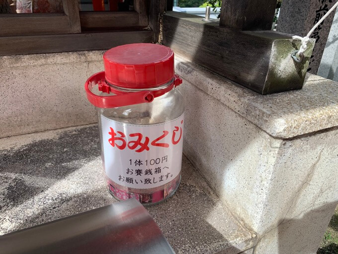 100円でおみくじを引くことができたのでやってみた。おみくじは、梅酒を漬けるようなボトルに入っていた。