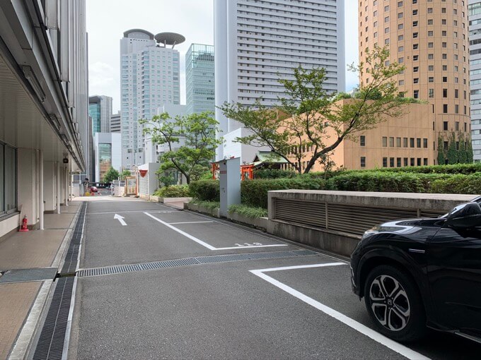 指示の通り3階に登っていくと、高層ビル群を背景に祠がポツン建っていた。なかなか違和感があって、楽しい風景だ。