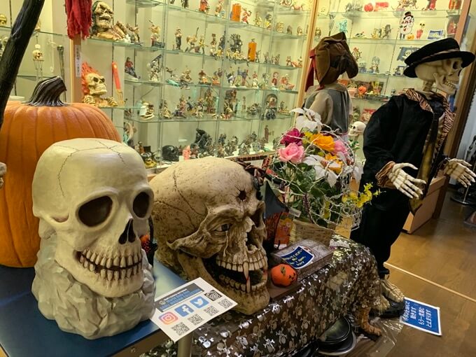 昨今は日本でも定着した、ハロウィンの電動スカル人形もたくさん並んでいた。ハロウィンの時期には、イベントもあるようだ。