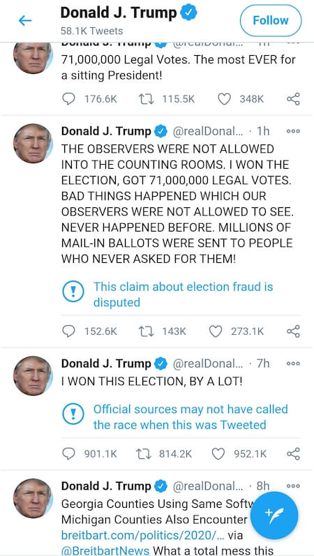 ──メディアがバイデン勝利のムードを凄く作ってますよね。Twitterにしても、トランプが「私は勝っている。投票所で悪いことが行われた」とツイートをしたら、「この不正選挙の主張は論争になっています」というメッセージが出て、クリックすると「不正選挙など滅多に起こらない」という記事が出てくるようにしています。バイデンが勝った感をすごく醸し出そうとしています。