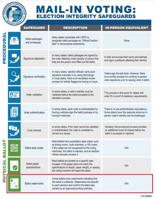 ジェームズ これは「国家保護・プログラム総局(Cybersecurity and Infrastructure Agency・CISA)」という国土安全保障省傘下の組織が郵便投票にwatermarkを入れ、フェイク票との区別をできるようにしていたそうです。