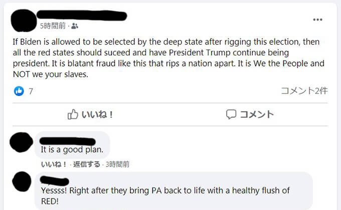 もしバイデンが今回の選挙を不正操作し、ディープステートによって当選したことが許されるならば、共和党支持の全州は、トランプ氏が大統領であり続けるようにすべきです。アメリカを引き裂くのは、このような明らかな不正行為です。我々は「奴隷」ではなく、アメリカの「市民」なのです。