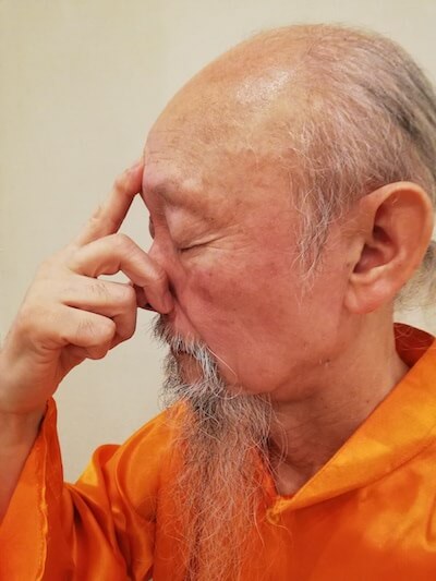 成瀬 右手の人指し指を眉間に当てて親指で右の鼻の穴を塞ぎますね。その状態で左の鼻の穴を使って、普段どおりに息を吐いて吸ってください。そしたら中指で左の鼻の穴も塞ぐと両方の鼻の穴が塞がりますよね。ここで一拍、息を止めて、そのあと親指を離して右の鼻で息を吐いて吸って止めます。これを自分の呼吸のペースでやってください。ウチの教室では3分やっています。簡単ですけど、とても重要な呼吸法です。