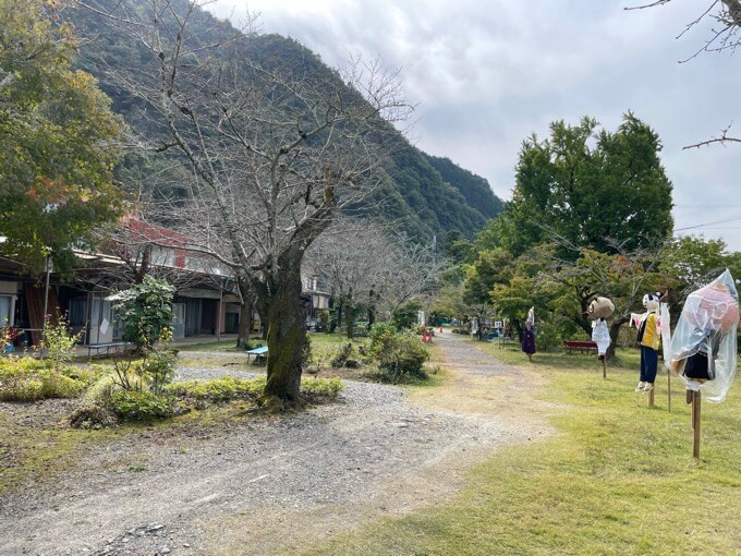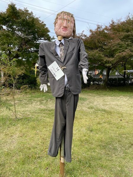 神社に隣接する桃太郎公園ではカカシ大会が繰り広げられていた。