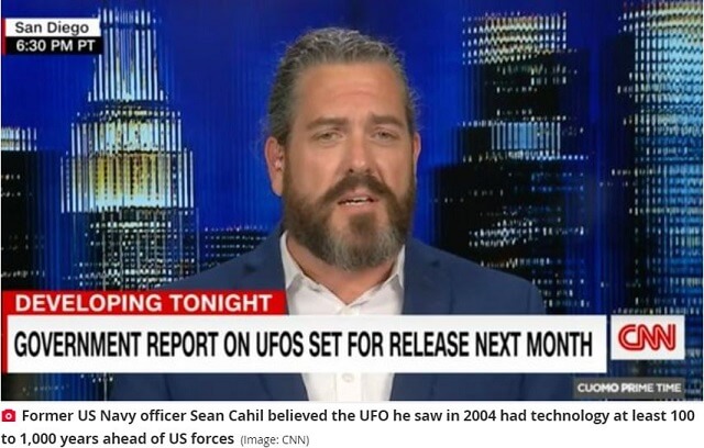 「私たちが目撃したチクタクUFOの技術は、自軍を超えた高度なものでした。技術将校らがチクタクUFOの観測で確認したものは5つあります。これらは現時点で少なくとも100~1000年進んだ、私たちの兵器を凌駕する技術を示唆しています」(ショーン・ケーヒル氏)