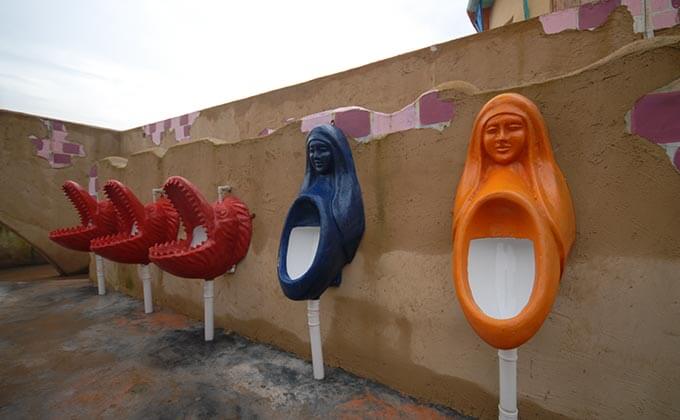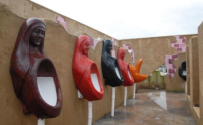 このトイレは遊園地の入口付近にあり、「聖母マリアの像」や「口を大きく開けたもの」、「チューリップ」、「ワニ」などの形をした男性用の便器が並んでいた。しかし、設置されてから数年後、大きな問題が発生したのである。欧米人らが「聖母マリアの像に向けて小便をするのはけしからん!!」と抗議したのだ。その後、「聖母マリアの像」型の便器は、撤去されてしまった。