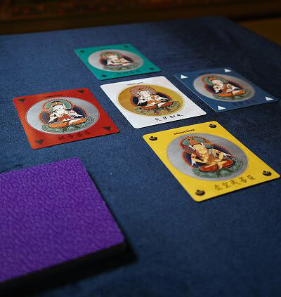 天竺 膨大な仏教経典や論文も再度読み込み研究し直しました。タロットについてもかなり調べましたね。それから仏様とタロットの対応表を作って…。タロットに使われる仏像の絵も、どれも天下一品のものだけで揃えました。究極の仏像の絵は、それこそバブルのころから僕が選び続けていたので、2000枚以上の中から選んでいますので、本当に先鋭化された仏様の絵が選ばれています。