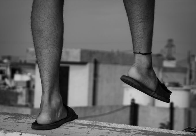 と、その時だった。彼がかぶっていた毛布が強い力ではがされた。そして暗さに適応を始めてしまった視力が、とんでもないものをとらえてしまった。それは椅子の上に立つ、膝から下だけの2本の足だった。