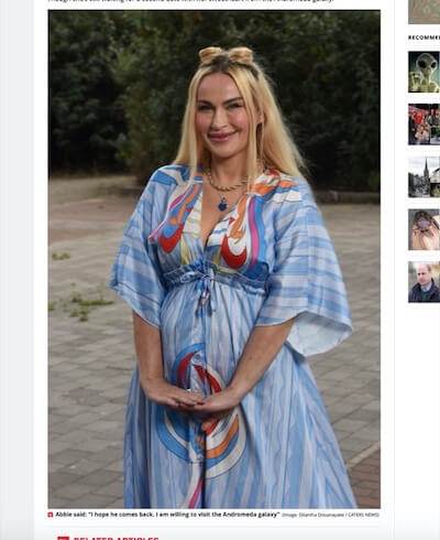 UFOに誘拐されて、そこで出会ったエイリアンと恋に落ちたと主張するのは、30代の英国人女性アビー・ベラさん。女優をしているブロンド美女がエイリアンと出会うきっかけとなったのは、ネット上でのジョークだったという。