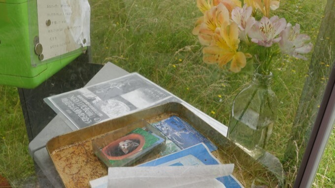 その他には、自殺防止の活動をしているボランティアの男性の記事や、その人の名刺が貼ってある。小銭がなくても電話がかけられるようにテレホンカードが何枚も置いてあるのを見て「懐かし!!」と思った。