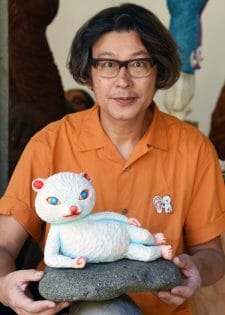 現代美術家。1970年神奈川県生まれ。現実にありながら見えない「もの」や「こと」を動物キャラクターにして彫刻やドローイング、絵画などで表現し、国内外で高く評価されている。主な展覧会に、「飛天」(ROPPONGI HILLS A/D GALLER、2018)、「ねむりと死」(un petit GARAGE、2017)、かけがわ茶エンナーレ(2017)、 「けものアパートメント」(ヨコハマアパートメント、2015)、「totem」(nca | nichido contemporary art、2014)がある。作品は東京都現代美術館、笠間日動美術館にも所蔵されている。