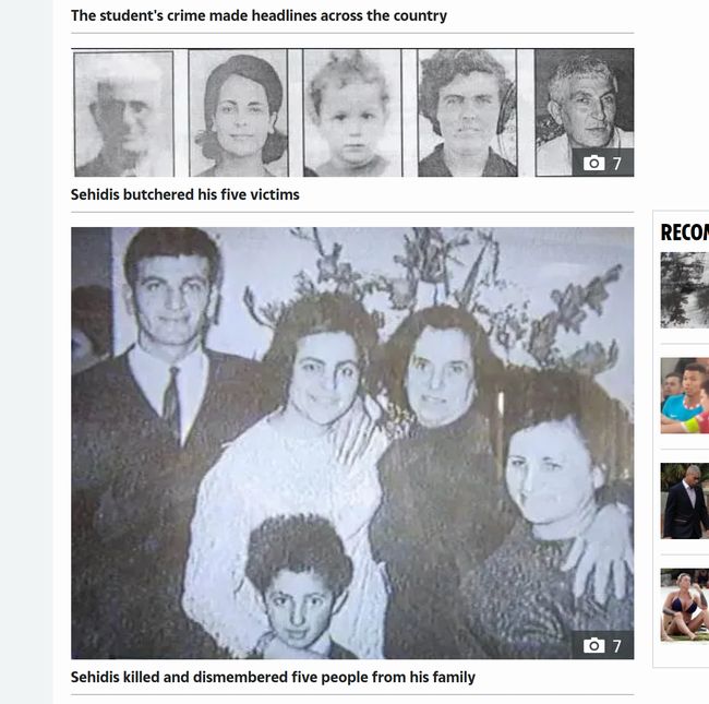 画像は、「The Sun」よりセヒディスの最初の犠牲者は叔父のヴァシリス(当時58)で、口論の後に崖から突き落とされた。セヒディスは「もう苦しむことはない」ようにヴァシリスの首を切り落とした。その後、遺体を茂みに隠し、新しいシャツと狩猟銃を買いに行った。