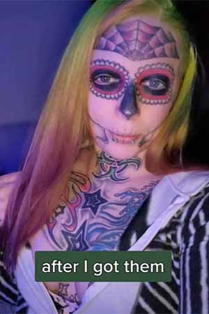 現在、彼女は薬物中毒から回復中で、薬物による「トラウマ」を常に思い出させるという理由から、顔の死者の日タトゥーを取り除くことを決意。自身のTikTokアカウントで「除去の旅」を記録し、彼女が経験した痛みをフォロワーに伝え、その劇的な変化の画像を公開している。