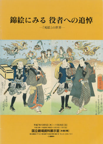 藤井:もう少し大人しいトーンのもので 「死絵」も日本独特のジャンルです。これは江戸時代に役者など著名人が死亡した際、訃報と追善を兼ねて摺られた浮世絵で、『錦絵にみる 役者への追悼 「死絵」の世界』(国立劇場)という国立劇場資料展示室での展覧会図録があります。死絵は浮世絵師の歌川国芳や歌川豊国なども描いており、美術館でも死絵はコレクションされています。