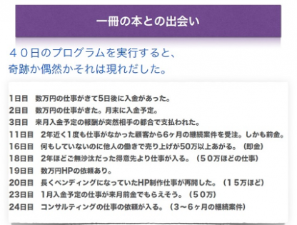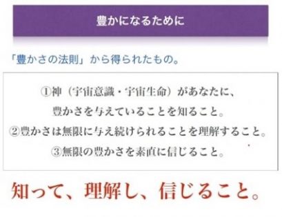 ――40日のプログラムの体験記を読むと、不思議なことにどんどんお金が入ってくる様子が書かれてありますね。金運のブロックが取れていくという感じでしょうか。