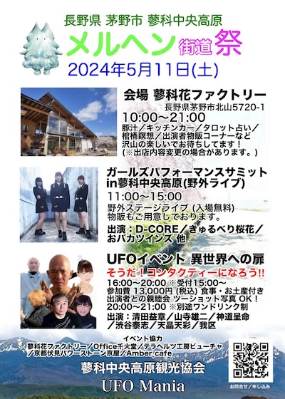 2024年5月11日(土)にはTEAM UFO Mania主催のイベントが長野県茅野市蓼科高原で開催される。