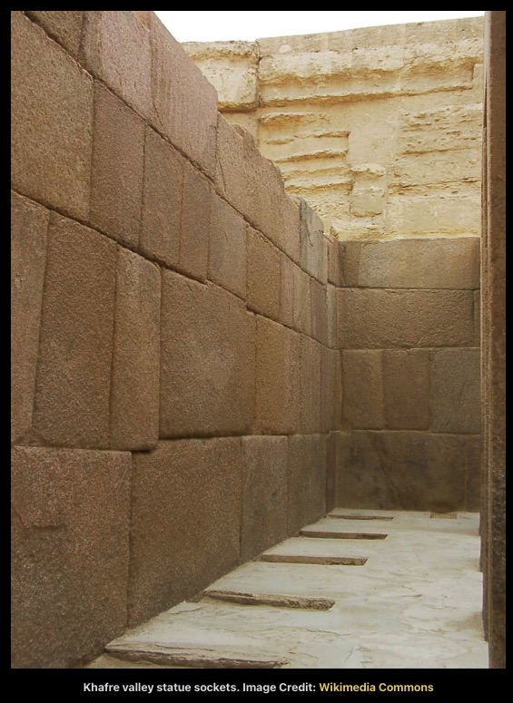 地球の反対側、エジプトのギザまで約1万500㎞を旅すると、スフィンクスの隣にあるカフラー王の河岸神殿(Valley Temple)で同様の特徴的な建築技術を見ることができる。