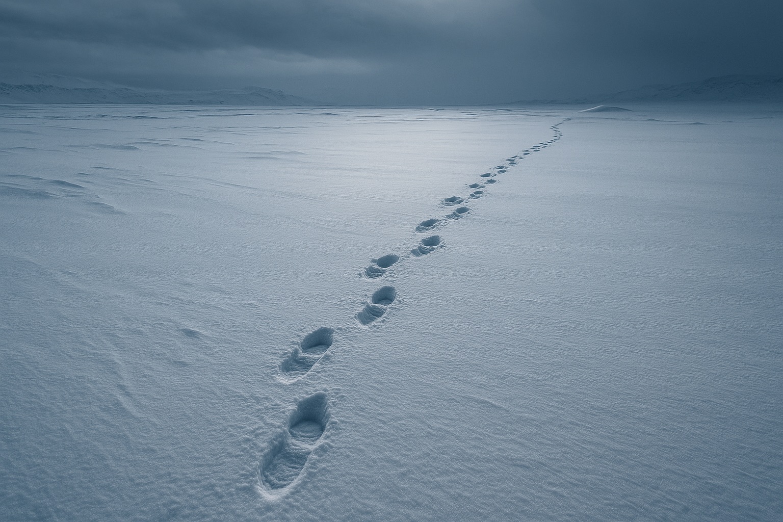 午前11時30分、彼らはロープを逸れて進む人間の足跡を発見する。足跡は迷子になった者の足取りには見えず、意図的に特定方向へ向かっているもののように見えた。