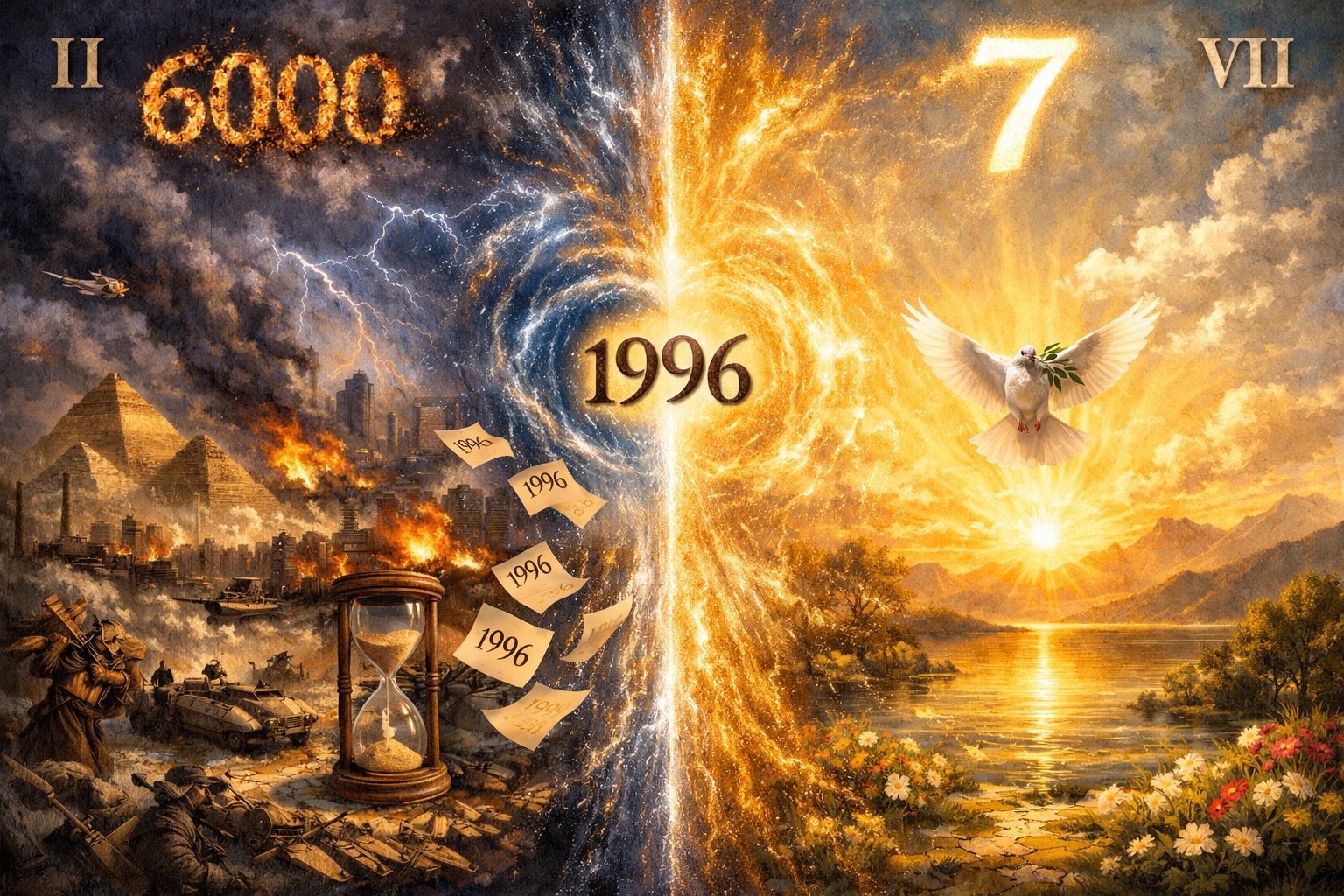 6000年が6日目の終わりだとすれば、西暦1996年にはこの世が終わっていることになる。2026年の今はすでに世界が終わった後の7日目なのだろうか。