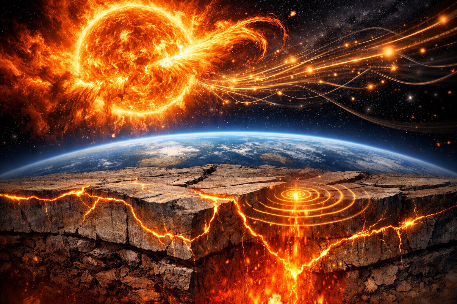 研究チームは太陽活動によって引き起こされる電離層の擾乱が、特定の条件下では地球の地殻の脆弱な領域に影響力を及ぼす可能性があることを示唆するモデルを提唱している。