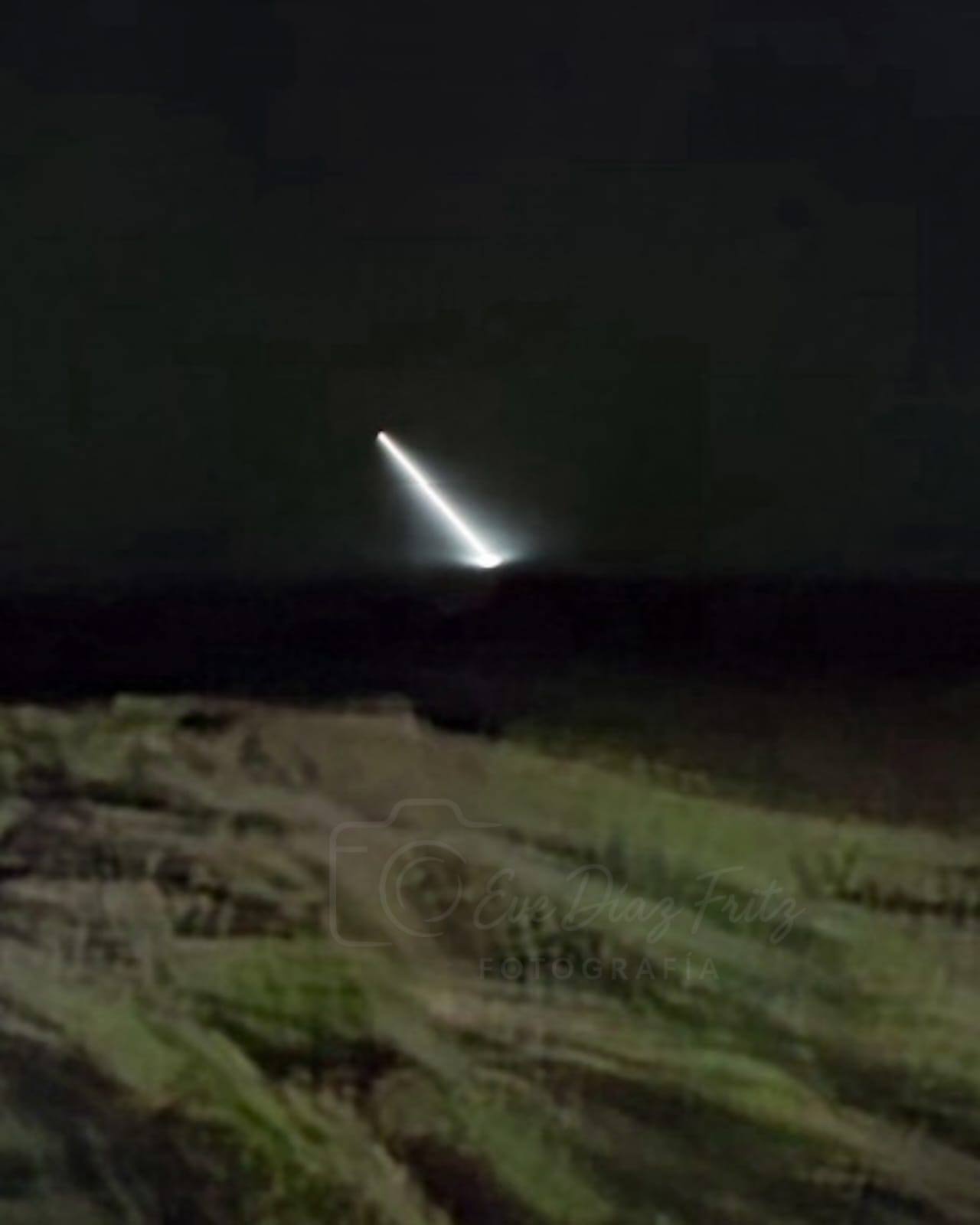 ディアス氏が公開した写真には、夜空から地面へと真っ直ぐに伸びる、鮮明な光のラインが写っている。