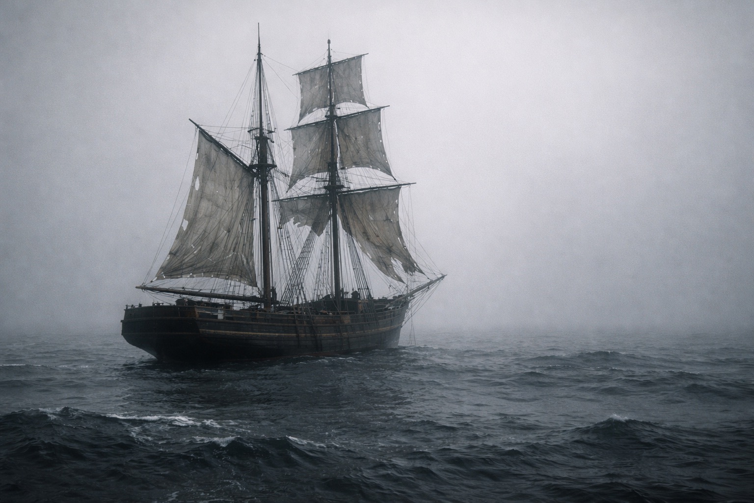 この船は1872年11月7日にニューヨークを出航し、イタリアのジェノヴァへ向けて航海していた商船、メアリー・セレスト号であったが、冬の荒波の中、不気味なほど静かに漂っていた。